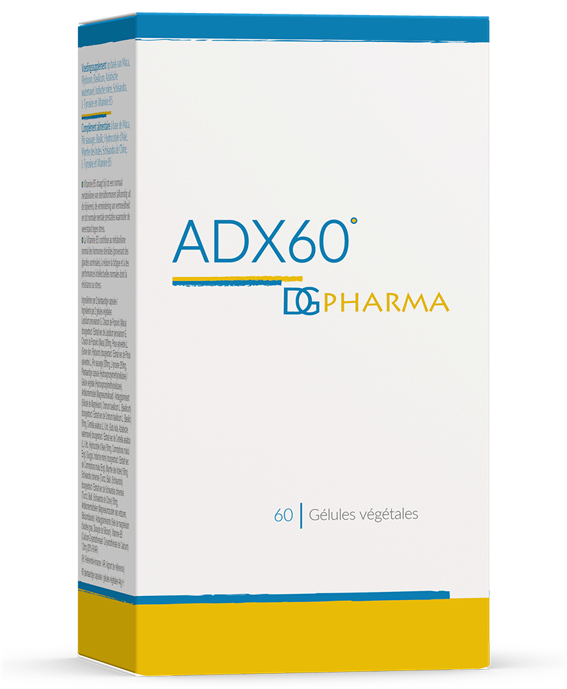 ADX60 is een unieke samenstelling van 6 adaptogene planten en l-tyrosine. ADX60 herstelt de verstoorde bijnierfunctie ten gevolge van overmatige stress. ADX60 herstelt en behoudt het evenwicht tussen de productie van stress-hormonen en anti-stress hormonen door de bijnieren. ADX60 ondersteunt en herstelt op natuurlijke wijze de oorzaken en gevolgen van uitputting door stress en burnout.