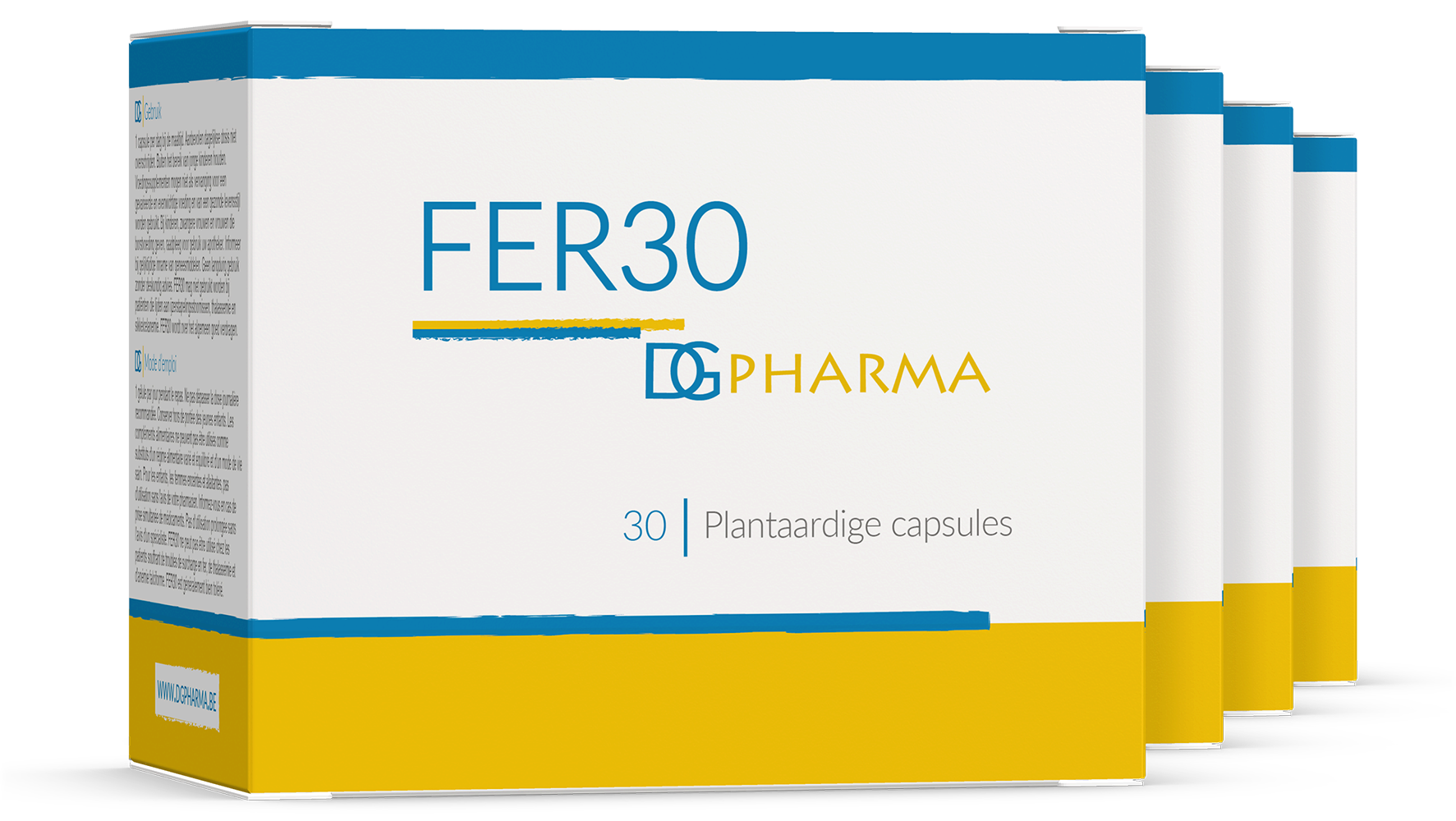 FER30 is een voedingssupplement dat het lichaam op een natuurlijke, veilige en efficiënte manier van extra ijzer voorziet. FER30 bevat per capsule 155mg ijzerfumaraat, een natuurlijk organisch ijzerzout dat makkelijk door de darm wordt opgenomen en zonder enig ongemak of neveneffect de ijzerspiegel in het lichaam gevoelig verhoogt.